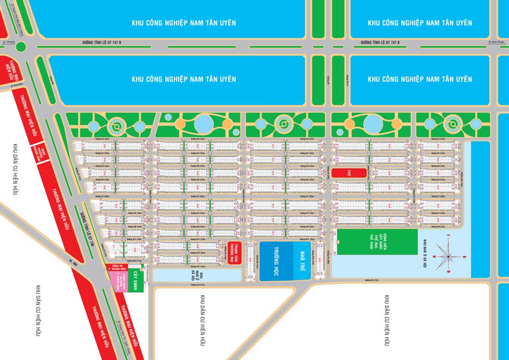 Đặc biệt là liền kề KCN Nam Tân Uyên và được bao quang bởi hàng loạt đô thị lớn như: TPM Bình Dương, thành phố Thuận An, thành phố Dĩ An, TP HCM, TP Biên Hòa và các tỉnh Tây Nguyên... thông qua các tuyến giao đường DT 746, DT745, DT 747B, Đại lộ Nam Tân uyên, Vành đại 4.