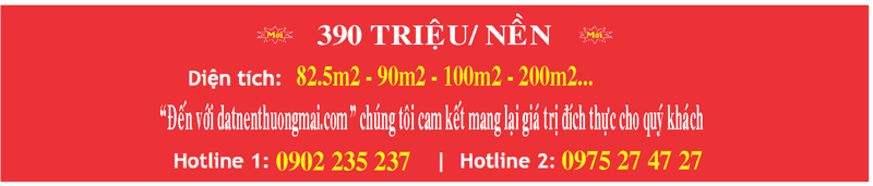 Diện tích: 82,5m2- 238,3m2 Giá bán từ: 390 triệu/ nền