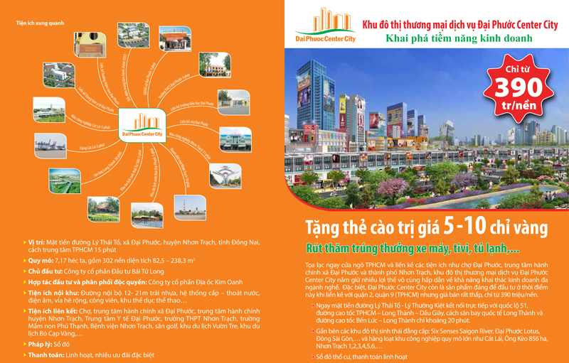 Hội tụ nhiều lợi thế về hạ tầng và tiếp giáp liền kề với quận 2, quận 9 (TPHCM) nhưng giá bán cực kỳ hấp dẫn ( chỉ từ 390 triệu/ nền ), được thanh toán linh hoạt trong 8 tháng, không lãi suất. Đặc biệt, khách hàng giao dịch thành công sẽ được tặng ngay thẻ cào trị giá 5-10 chỉ vàng và tham gia rút thăm trúng thưởng nhiều phần quà giá trị như xe máy, ti vi, tủ lạnh, máy lạnh...