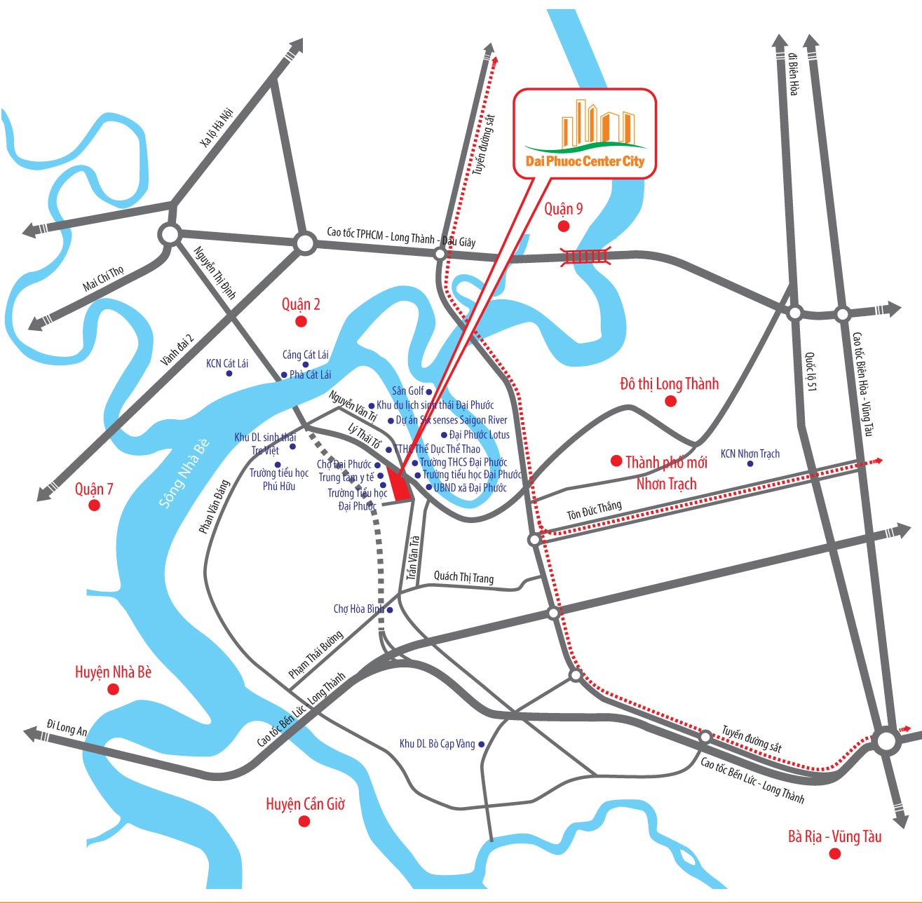 Một điểm nhấn quan trọng của Đại Phước Center City là liền kề hàng loạt khu đô thị và khu du lịch sinh thái đẳng cấp như Six Senses Saigon River, Đại Phước Lotus, Đông Sài Gòn,… Yếu tố này không chỉ đáp ứng tối đa các tiện ích về thương mại - dịch vụ, văn hóa cho cư dân Đại Phước Center City mà còn giúp tăng khả năng khai thác thương mại với nhiều ngành nghề mang lại lợi nhuận cao cho chủ sỏ hữu như cho thuê mặt bằng, tạp hóa, văn phòng phẩm, dịch vụ du lịch, nhà hàng,….
